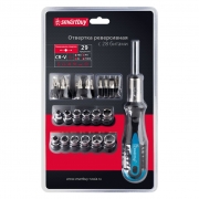 Производитель: Smartbuy Наименование: Отвертка реверсивная с набором насадок Предназначение: Для электромонтажных работ Количество предметов: 29 Материал насадок: CR-V