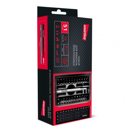 Отвертка с набором бит Smartbuy SBT-SCBS-51p2 предназначена для работы с мелкой электроникой, точной механикой, и оргтехникой. В комплект входят: отвертка с вращающимся упором для ладони, антистатический пинцет, магнитный коврик, набор из 48 бит и пластиковый кейс.