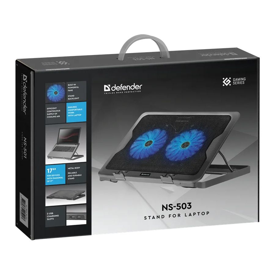 Defender NS-503 - крепкая и надежная подставка с двумя вентиляторами для ноутбука до 17". Поддержит температуру ноутбука в рабочем состоянии в течение требуемого для игры или работы времени.