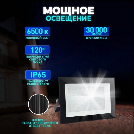 Светодиодный энергосберегающий прожектор Smartbuy предназначен для освещения фасадов зданий, внутренних дворов, садов, оград, гаражей, складских помещений, рекламных стендов, вывесок, витрин, в сфере ЖКХ, и проч. Он является энергоэффективной заменой галогенных прожекторов. Прожектор обладает степенью защиты от пыли и влаги IP65, подходит как для внутреннего, так и для наружного использования. Корпус выполнен из ударопрочного материала, алюминиевый радиатор обеспечивает стабильный срок службы светодиодов. Не содержит ртуть и экологически безопасен. Технические характеристики
