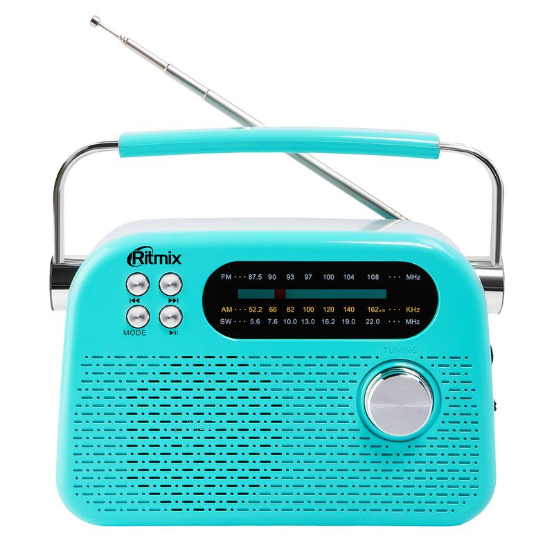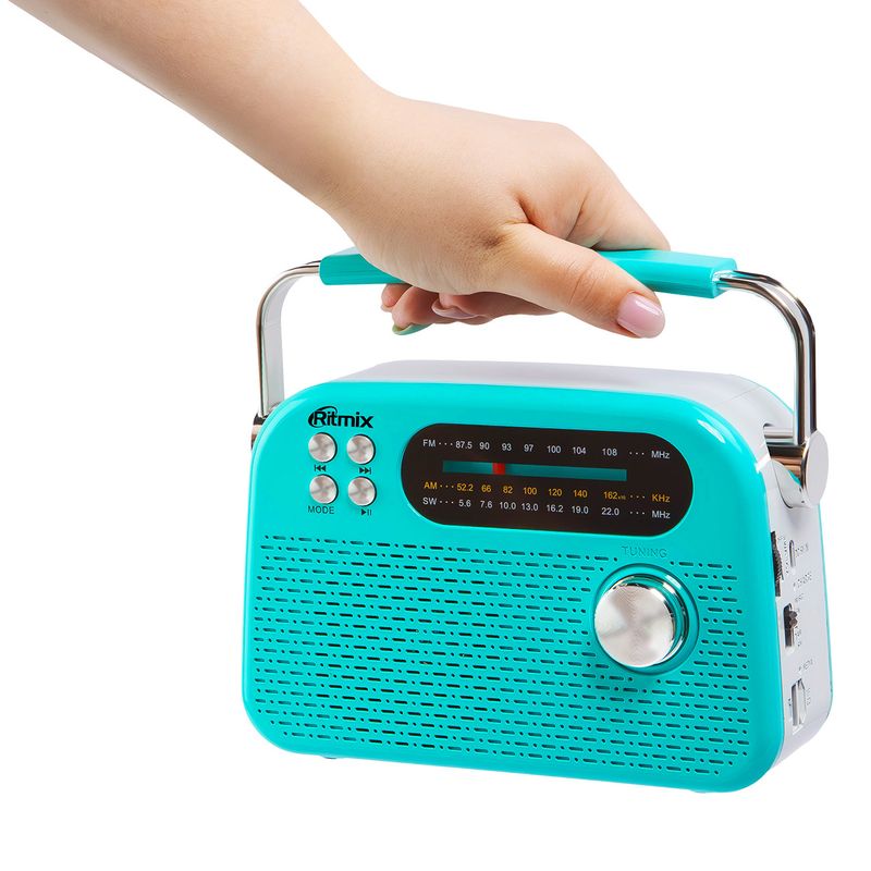 Ritmix RPR-045 - портативный трёхдиапазонный радиоприёмник с Bluetooth и MP3-плеером. Аналоговый тюнер с удобной поворотной ручкой настройки радиочастот и четкой шкалой FM / AM / SW диапазонов, надёжной ручкой для переноски, приятного лаконичного дизайна всё нужное под рукой, ничего лишнего. Устройство многофункционально: благодаря телескопической и поворотной антенне выполняет отличный приём эфирного радиосигнала в диапазонах FM, AM и SW. Поддерживает воспроизведение МР3 файлов с USB флеш или micro SD носителей, таким образом становясь портативным плеером. Также доступно быстрое подключение к мобильному устройству (смартфону, планшету, ноутбуку) через Bluetooth, в таком подключении становится мини-колонкой. Благодаря динамику высокого качества диаметром 57мм, мощностью 5 Вт и усовершенствованной подаче питания Вы будете наслаждаться чистым звучанием без помех и шипения. Слушайте любимые радиопередачи, или свой собственный музыкальный плей-лист, или аудиокниги дома, на работе, на даче, на отдыхе на природе.