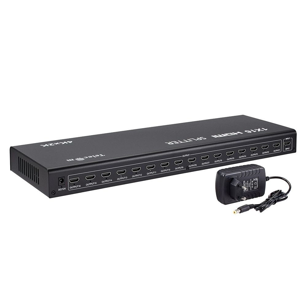 HDMI разветвитель 1=>16 Telecom TTS7015 позволяет подключить к одному источнику цифрового видеосигнала (медиаплееру, ресиверу, компьютеру и др.) одновременно шестнадцать мониторов, телевизоров или проекторов. Полностью поддерживает версию 1.4. Максимальное разрешение 4K@30Hz.