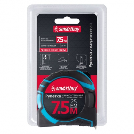 Производитель: Smartbuy Наименование: Рулетка измерительная Длина ленты: 7.5 м Ширина ленты: 25 мм Материал ленты: Сталь Материал корпуса: Прорезиненный пластик Цвет: Черный/голубой