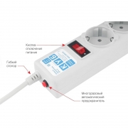 оснащено 5 евророзетками с заземлением, однополюсным выключателем со
