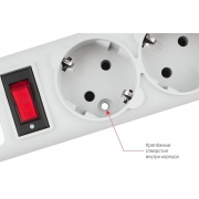 оснащено 5 евророзетками с заземлением, однополюсным выключателем со