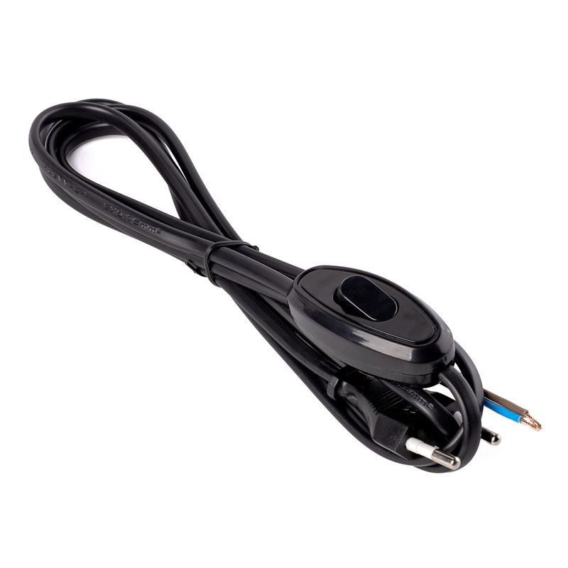 Шнур с плоской вилкой и проходным выключателем. Используется для подключения бытовых электроприборов. Длина шнура 1,7 метра. Провод ШВВП 2х0,75 мм2. Максимальная нагрузка 1500 Вт. Технические характеристики