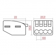 Строительно-монтажная клемма предназначена для соединения четырех проводников сечением 0.5-4 мм2. Пружинный зажим клеммы обеспечивает надежный и долговечный контакт. Наличие технологического отверстия позволяет проверять наличие электрического контакта между проводниками. Преимуществом строительно-монтажных клемм перед другими видами электрических соединений является простота монтажа и надежная защита от контакта с токоведущими частями. Цена указана за 50 шт