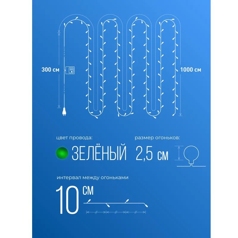 Производитель: Космос Наименование: Светодиодная гирлянда Кол-во светодиодов: 100 Диаметр шарика: 2.5 см Кол-во режимов: 8 Степень защиты: IP44 Общая длина: 13 м (10+3м шнур) Цвет: Мультиколор Питание: От сети 220 В