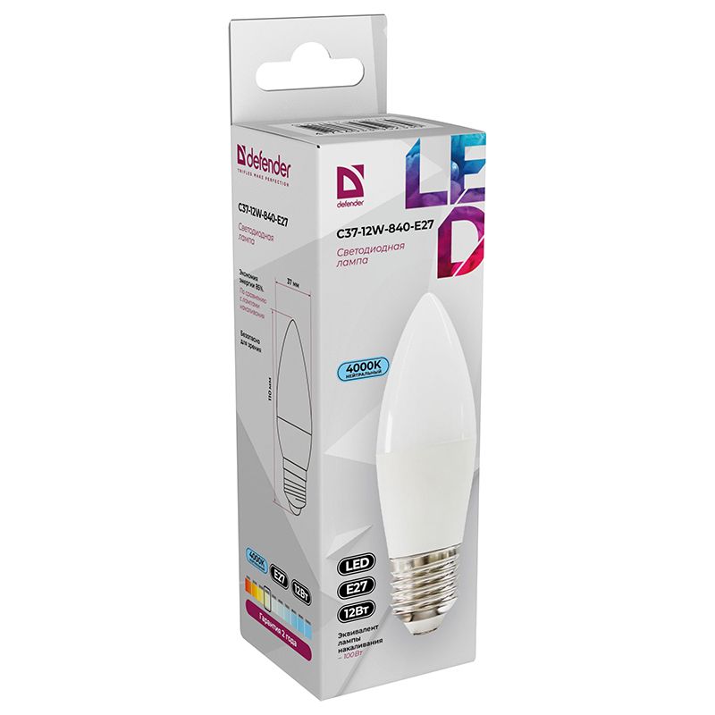Лампочка C37 Defender свеча 12 Вт предназначена для использования в