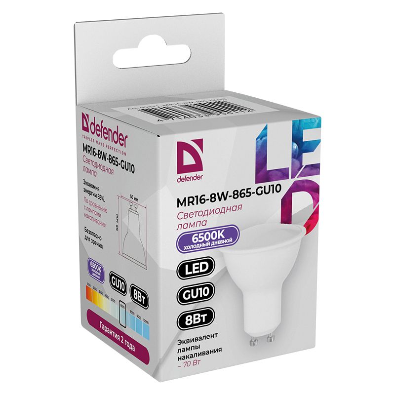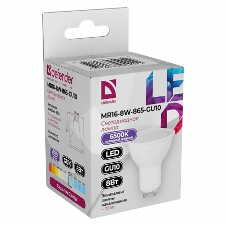 Лампочка Defender MR16 софит 8 Вт с цоколем Gu10 применяется в сети 230В