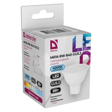 Лампочка Defender MR16 софит 8 Вт с цоколем GU5.3 применяется в сети