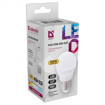 Лампочка Defender P45 шар 10 Вт предназначена для использования в