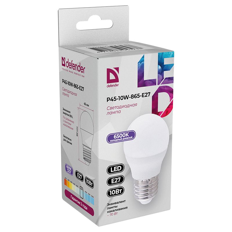 Лампочка Defender P45 шар 10 Вт предназначена для использования в