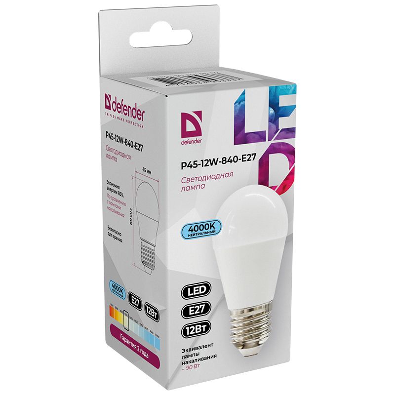 Лампочка Defender P45 шар 12 Вт предназначена для использования в
