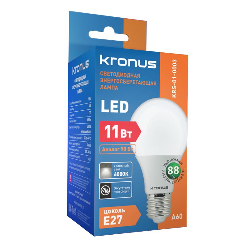 Светодиодная (LED) лампа Kronus A60 11W/6000/E27 (KRS-01-0003)
