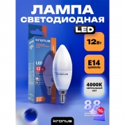 Производитель: Kronus Наименование: Энергосберегающая светодиодная лампа Потребляемая мощность: 12 Вт Эквивалент накаливания: 100 Вт Источник света: LED Световой поток: 960 лм Коэффициент цветопередачи: Ra>80 Цветовая температура: 4000 К (холодный свет) Тип колбы: С37 Цоколь: Е14 Ресурс работы: до 30 000 ч Рабочее напряжение: 220 - 240В Цвет колбы: Белый/матовый Диаметр: 37 мм Размеры: 110 x 37 мм