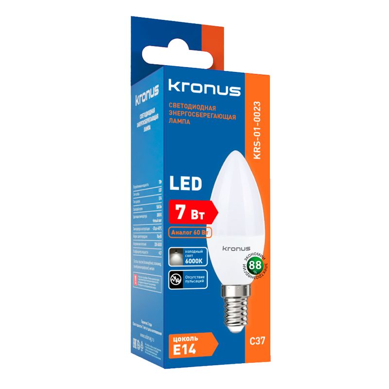 Светодиодная (LED) лампа Kronus C37 7W/6000/E14 (KRS-01-0023)