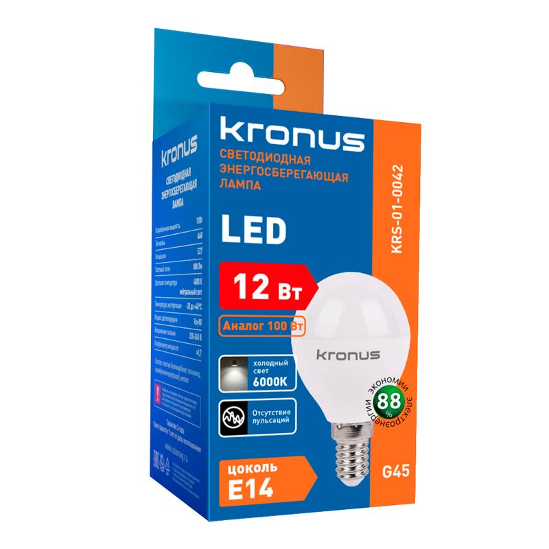 Светодиодная (LED) лампа Kronus G45 12W/6000/E14 (KRS-01-0042)