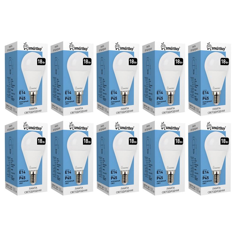 Smartbuy P45 - энергосберегающая светодиодная лампа общего или декоративного освещения, подходит для замены стандартных ламп накаливания и галогенных. Благодаря своей экономичности, длительному сроку службы и экологичности она выгодно отличаются от обычной лампы накаливания. Лампа P45 повторяет форму и размеры стандартных ламп типа «шар» и идеально подходит к любому светильнику, в котором используются данные типы ламп. Колба лампы имеет матовую поверхность и оснащена цоколем E14. Хорошая цветопередача и отсутствие мерцания обеспечивают меньшую утомляемость глаз. В лампе применяется высокоэффективный драйвер с ресурсом работы до 30 000 часов. Не содержит ртути и экологически безопасна. Цена указана за 10 ламп.