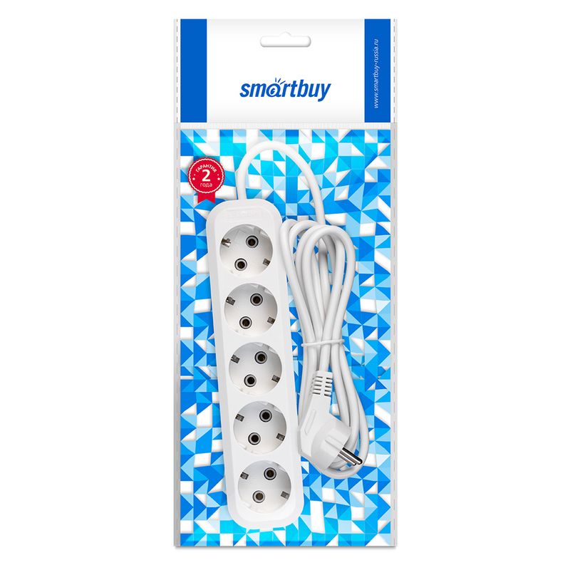 Удлинитель сетевой Smartbuy, 5 розеток, 2 м, 16А/3.5кВт с заземлением (SBE-16-5-02-Z)