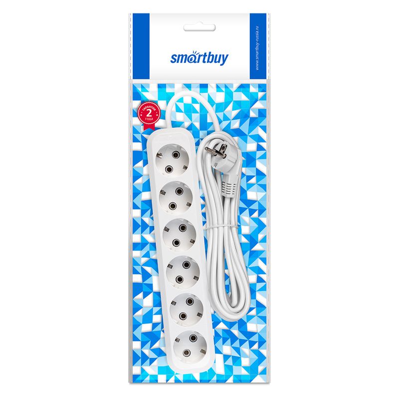 Удлинитель сетевой Smartbuy, 6 розеток, 5 м, 16А/3.5кВт с заземлением (SBE-16-6-05-Z)