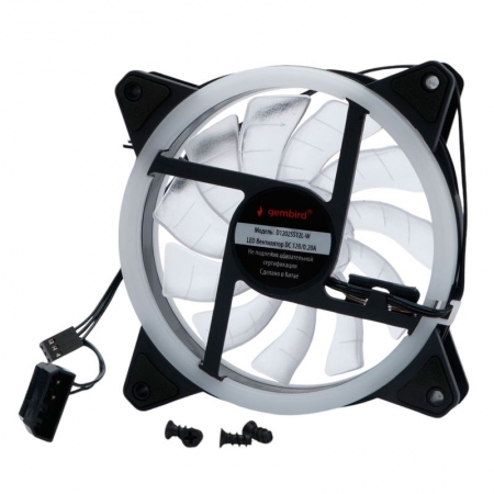Вентилятор с подсветкой 120 x 120 x 25, 3 pin+Molex, белый, кабель 35 см, Gembird (D12025S12L-W)