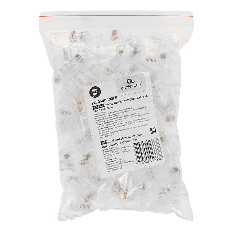 Коннектор RJ-45 8p8c со вставкой предназначен для установки на одножильный или многожильный кабель UTP кат. 5е. В упаковке 100 штук. Цена указана за упаковку. Технические характеристики