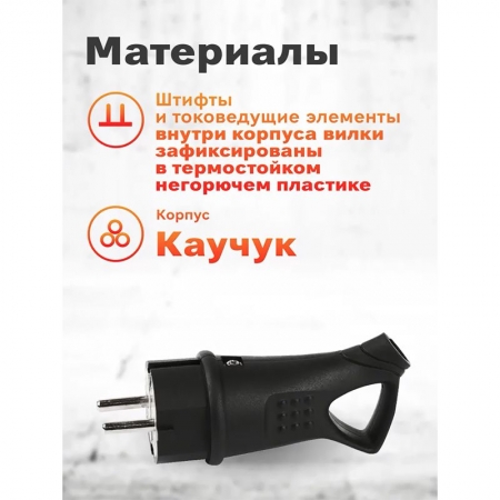 повреждения неразборной вилки. Материал корпуса - каучук. Разъемы имеют