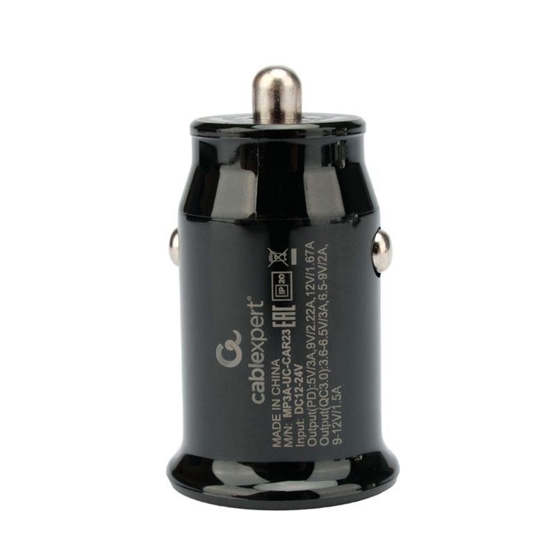 Cablexpert MP3A-UC-CAR23 - автомобильное зарядное устройство с поддержкой стандартов быстрой зарядки QC3.0/2.0, PD. Предназначено для зарядки мобильной техники от прикуривателя с напряжением бортовой сети 12-24В. Адаптер обладает мощностью 20 Вт, оснащен портами USB-A и USB-C. Корпус зарядного устройства выполнен из ударопрочного пластика и имеет компактные размеры. Технические характеристики