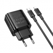 Зарядное устройство Borofone BA84A, QC3.0/PD 30W USB С + кабель Type C - Lightning, черное