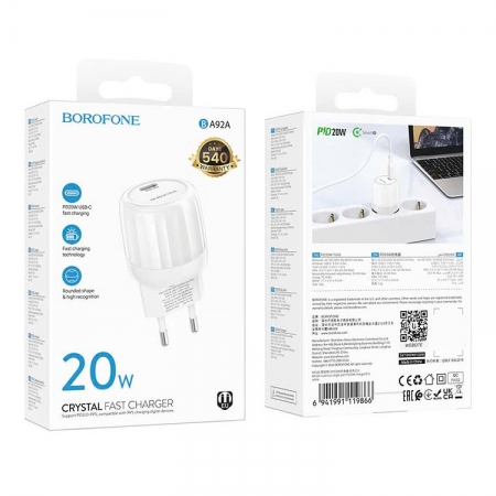 Зарядное устройство Borofone BA92A, QC3.0/PD 20W USB C, синее