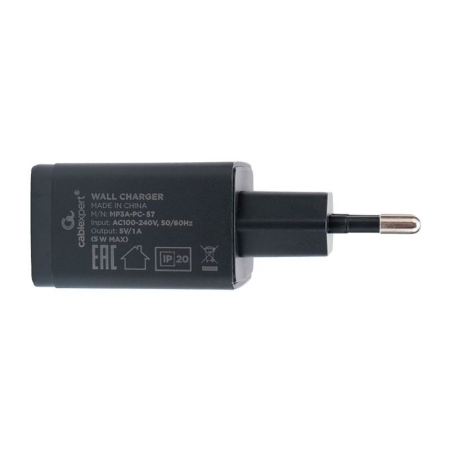 Производитель: Cablexpert Наименование: Зарядное устройство Входное напряжение: 100-240В Выходное напряжение: 5В Выходной ток: 1А Разъемы: USB A Материал корпуса: Пластик Цвет: Чёрный Упаковка: Пакет
