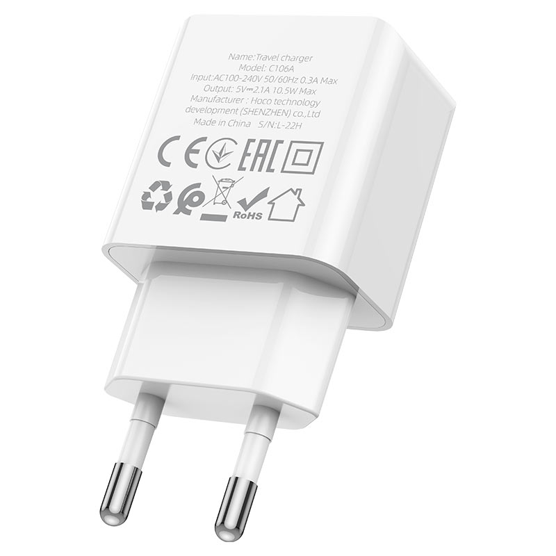 Зарядное устройство Hoco C106A Leisure предназначено для зарядки мобильной техники от электросети 100-240В. Модель оснащена одним USB-портом с выходным током 2.1 А. В нём предусмотрена защита от перенапряжения, перегрузки и перегрева. Корпус зарядного устройства изготовлен из термостойкого и ударопрочного пластика.