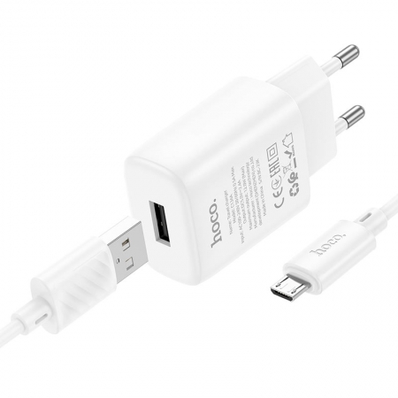 Зарядное устройство Hoco C134A 2.4А USB + кабель Micro USB, белое