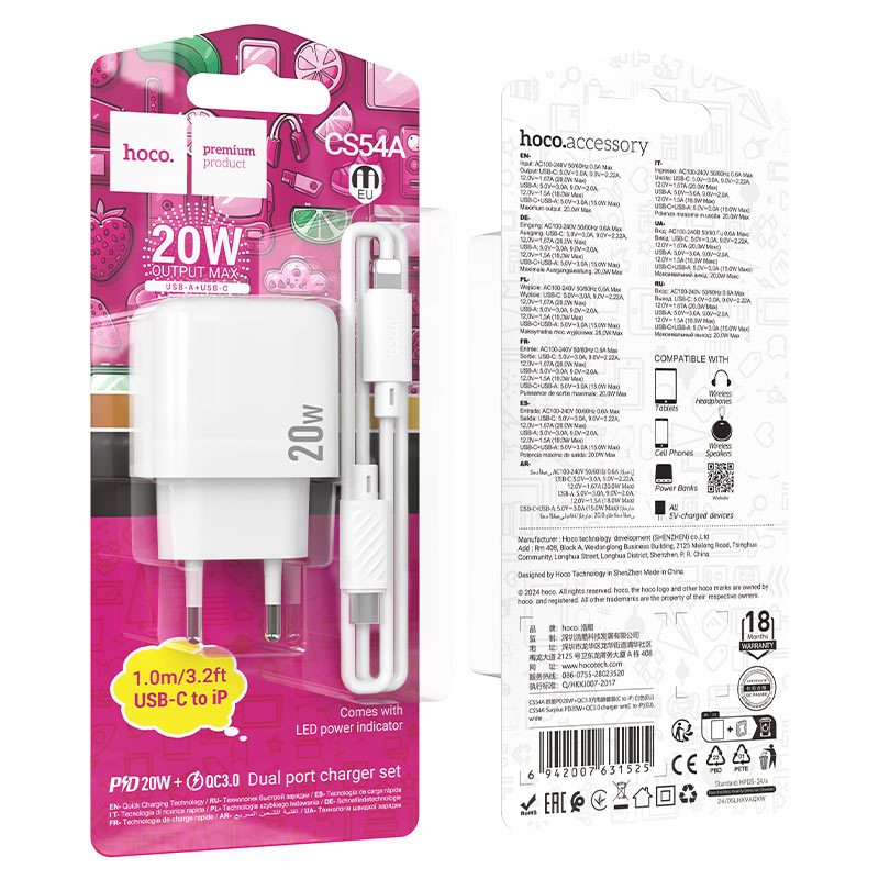 1 x USB A, 1 x USB C (Type C), кабель Type C - Lightning