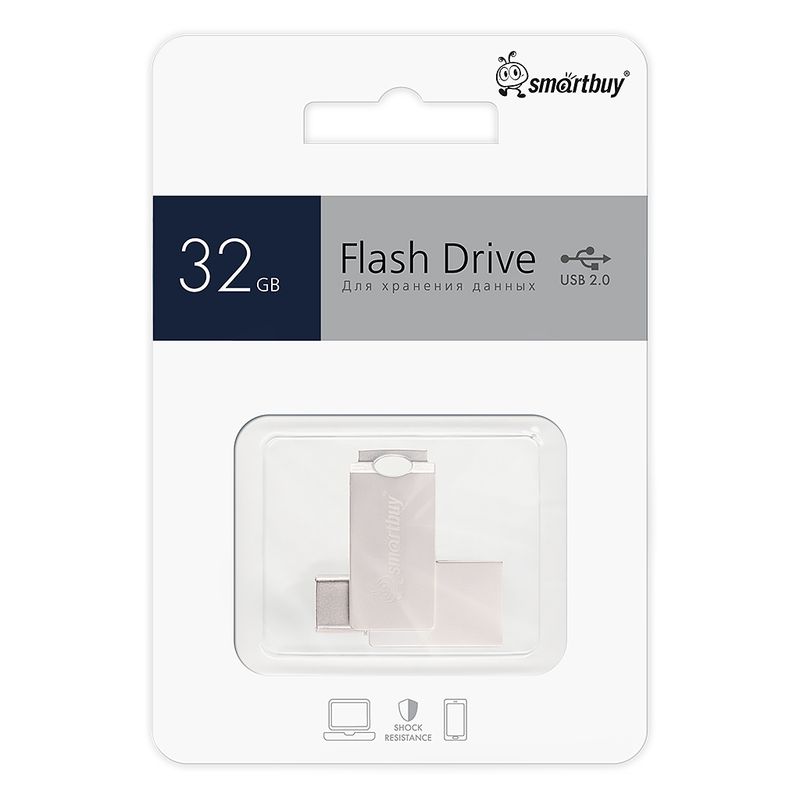 Производитель: SmartBuy Емкость: 32 Гб Разъемы: USB A, USB C Интерфейс: USB 2.0 Материал корпуса: Металл Цвет: Серый