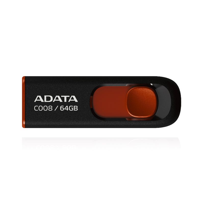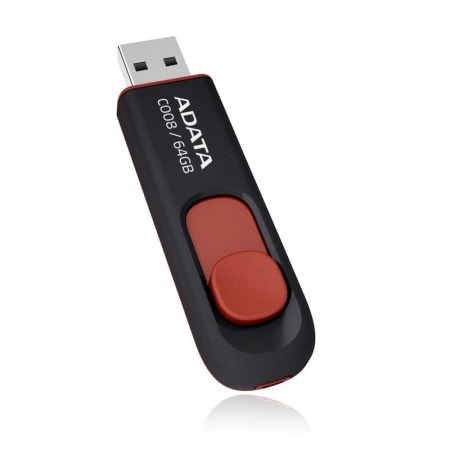 USB-накопитель Adata C008 поможет вам оперативно сохранить и перенести на ПК большой объем самой разнообразной информации. Благодаря механизму-слайдеру пользоваться устройством очень легко, достаточно выдвинуть коннектор пальцем. Предусмотренное отверстие позволяет пристегнуть гаджет к ключам или мобильному телефону.