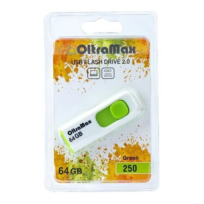 Производитель: Oltramax Емкость: 64 Гб Интерфейс: USB 2.0 Скорость передачи данных: чтение до 15 Мб/c, запись до 8 Мб/c Материал корпуса: Пластик Цвет: Белый/зелёный