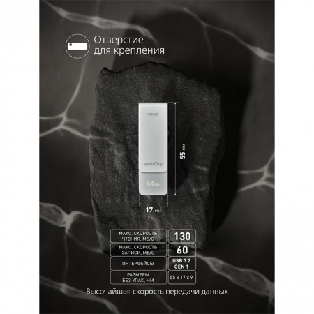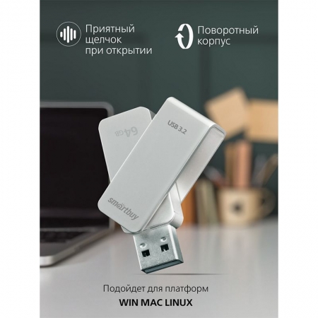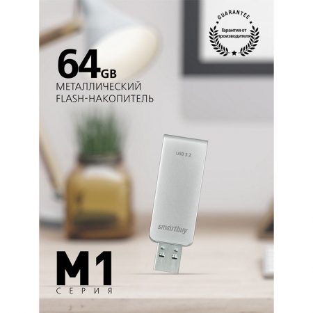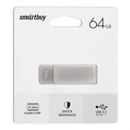 Smartbuy M1 - премиальный высокоскоростной флэш-накопитель в металлическом корпусе с поворотной крышкой. Устройство оснащено интерфейсом USB3.2 и обладает скоростью передачи данных до 130 Мб/c. Металлический корпус обеспечивает надежную защиту накопителя от повреждений.