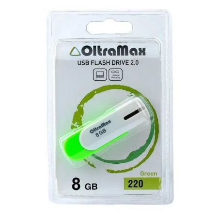 Производитель: Oltramax Емкость: 8 Гб Интерфейс: USB 2.0 Скорость передачи данных: чтение до 15 Мб/c, запись до 8 Мб/c Материал корпуса: Пластик Цвет: Белый/зелёный