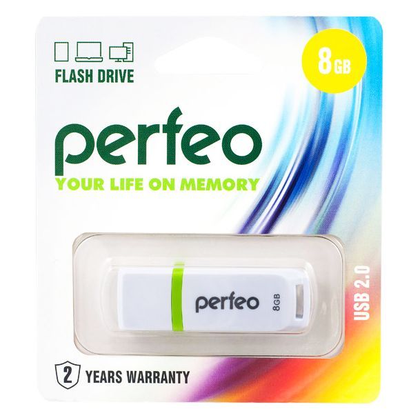 Производитель: Perfeo Емкость: 8 Гб Интерфейс: USB 2.0 Материал корпуса: Пластик, глянцевый Цвет: Белый/зеленый