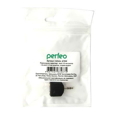 Производитель: Perfeo Тип устройства: Аудио адаптер-разветвитель Разъемы: 3.5 мм - 2 х 3.5 мм Цвет: Черный