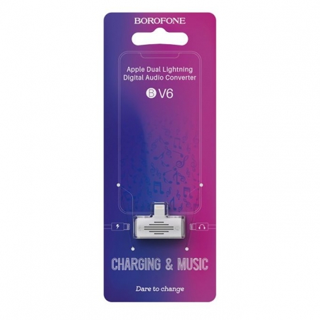 Адаптер Borofone BV6 предназначен для одновременного подключения зарядного устройства и наушников с разъемами Lightning к устройствам Apple. Поддерживает оригинальную гарнитуру Apple с проводным управлением. Благодаря компактным размерам и малому весу адаптер легко помещается в небольшой сумочке или кармане.