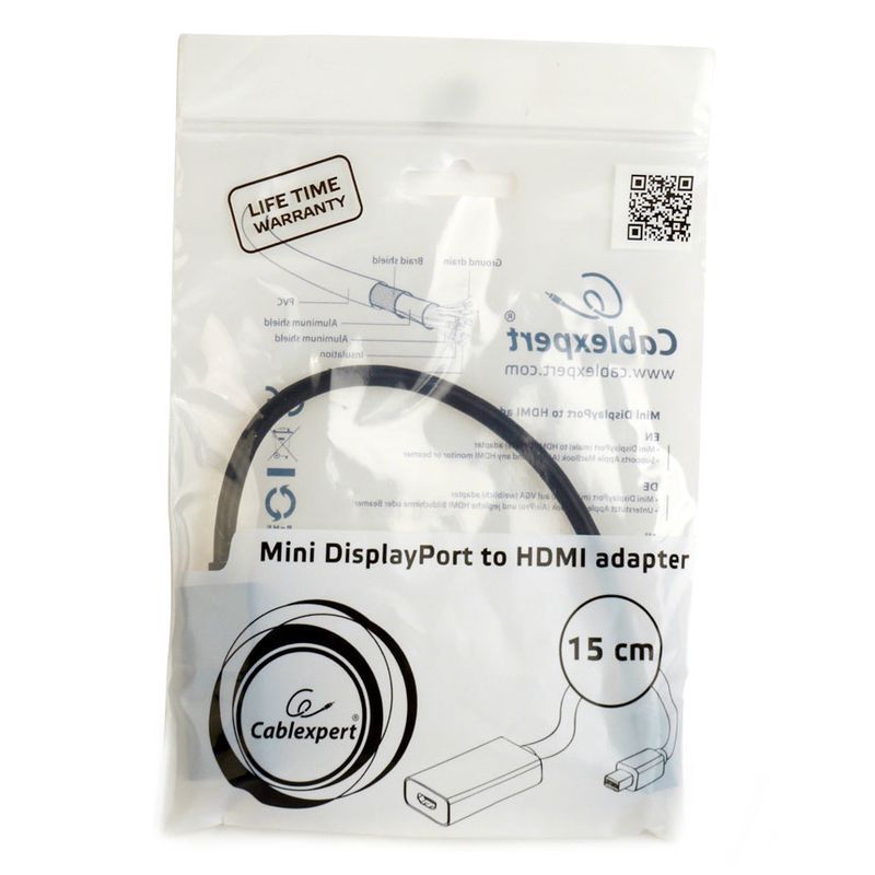 Главная / Кабели, разъемы, адаптеры / Адаптеры, переходники, разъемы / DisplayPort / Адаптер mini DisplayPort/M - HDMI/19F, 0.15 м, 4K, черный, Cablexpert (A-mDPM-HDMIF4K-01)