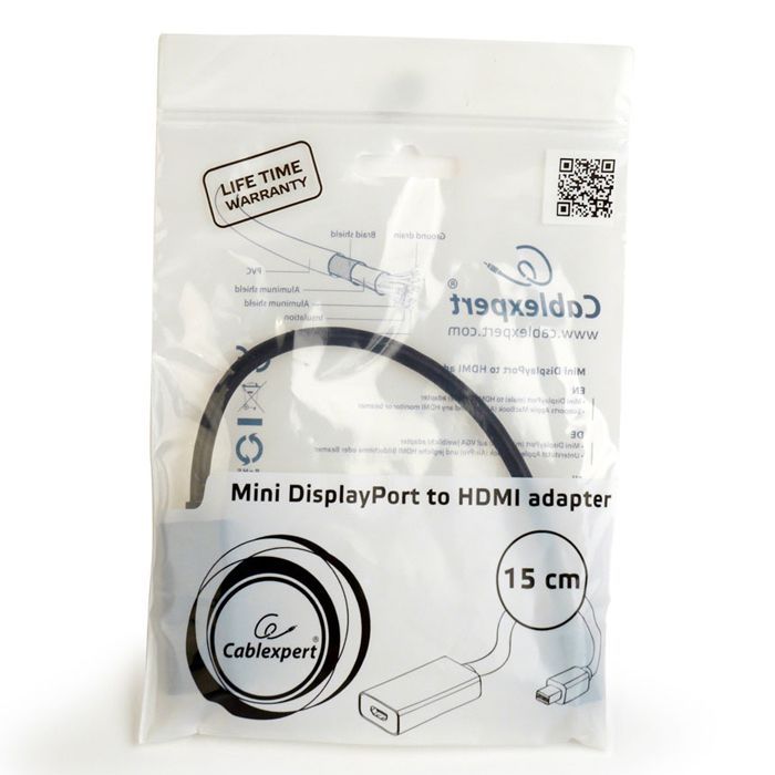 Адаптер Cablexpert используется для подключения компьютера или ноутбука с разъемом mini DisplayPort к телевизору или монитору с интерфейсом HDMI. Совместим с ноутбуками Apple. Не требует дополнительного питания и программного обеспечения. Технические характеристики