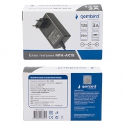 Производитель: Gembird Наименование: Адаптер питания Входящее напряжение: 100 - 240 В Выходящее напряжение: 12 В Сила тока: до 3 А Максимальная мощность: 36 Вт Размер штекера: 5.5х2.5 мм Защита от короткого замыкания: есть Защита от превышения выходного напряжения: есть Защита от перегрузки по току: есть Защита от перегрева: есть Полярность: минус - наружный, плюс - внутренний Длина кабеля: 1 м Цвет: Чёрный Вес: 125 г