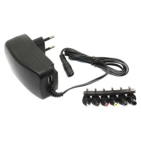 Универсальный блок питания KS-is KS-383 подойдет для различной техники: сетевых роутеров, периферийного и коммуникационного оборудования, LED лент и многих других устройств, с входным напряжением от 3 до 12 В и максимальной потребляемой мощностью до 24 Вт. Адаптер имеет регулируемое выходное напряжение (3/4.5/5/6 /7.5/9/12В), которое устанавливается переключателем на корпусе прибора. Также на блоке питания расположен USB порт для зарядки внешних устройств: смартфонов, блютус гарнитур и многих других. В комплект входит 6 переходников для подключения к различным типам устройств. Технические характеристики