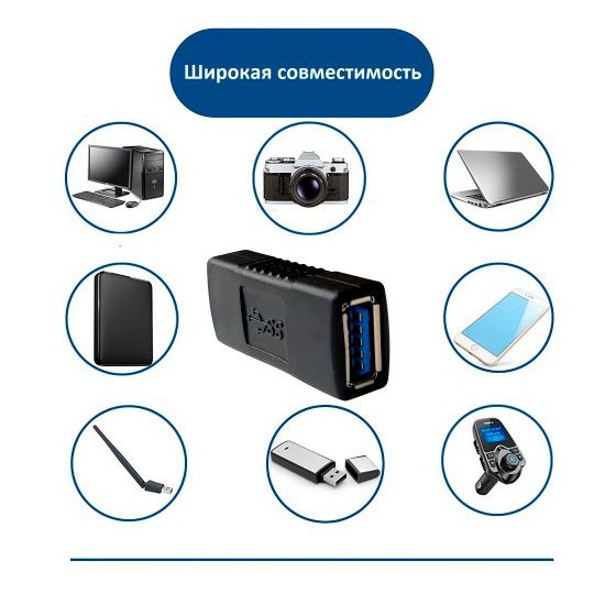 Адаптер USB 3.0 Af-Af предназначен для соединения кабелей с разъемами USB Am.