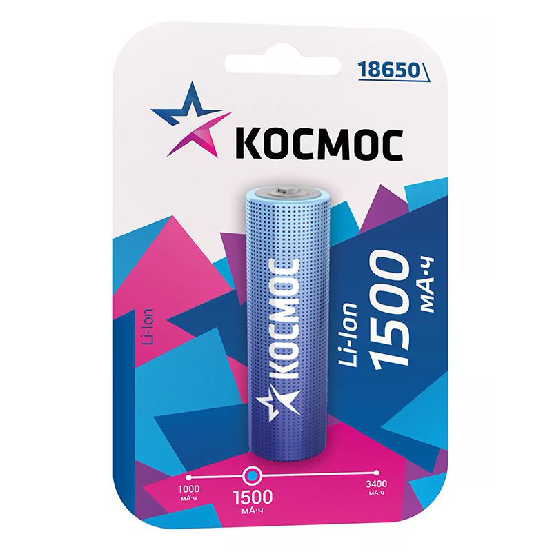 Аккумулятор 18650 Космос 1500мА/ч, без защиты, блистер (KOC18650Li-ion15UBL1)