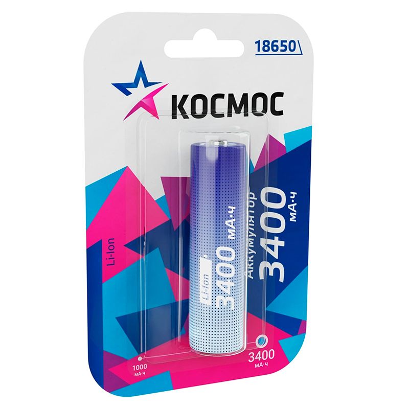 Аккумулятор 18650 Космос 3400мА/ч, без защиты, блистер (KOC18650Li-ion34UBL1)